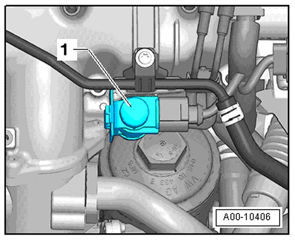 - Remove the vacuum shut-off valve -1- from its retainer and move it to the side.