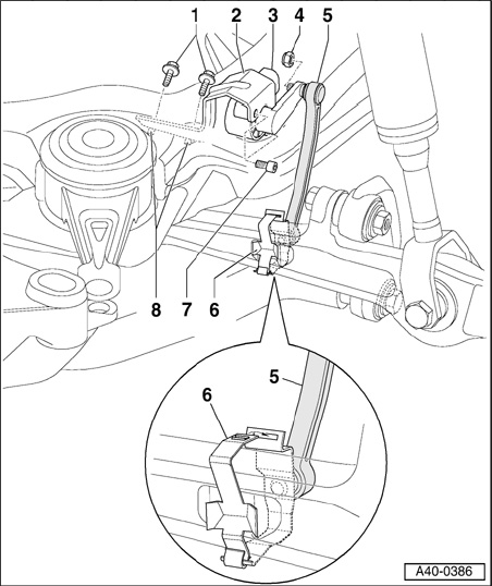^ Do not pull coupling rod off ball joint on Left Front Level Control System Sensor G78