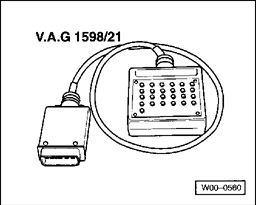 - Connect test box V.A.G 1598/21 to wiring harness to control module.