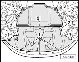 - Undo quick release fasteners -2- and -3- and remove sound deadening at rear. Sound deadening at front remains installed.