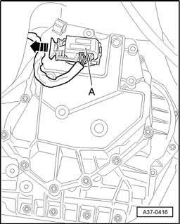 - Unlock connector -A- in direction of (arrow) and disconnect it from transmission.