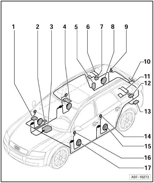 • => Fig. page => [ Window Aerial, rear left ] Components for Navigation System