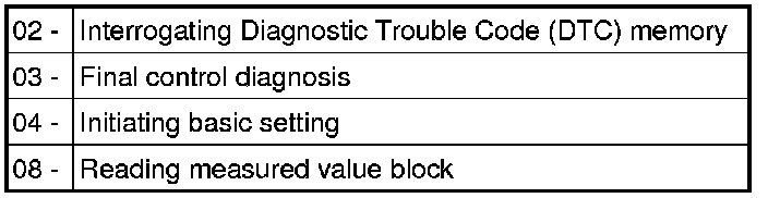 Indicated on display: (Function selection, e.g. 02 - interrogate DTC memory)