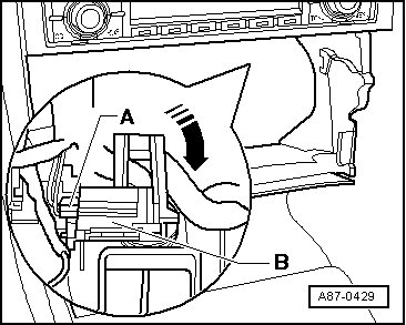 - Rotate the right footwell vent temperature sensor (G262) - B - approximately 90° in the direction of the - arrow -.