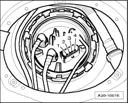 - Connect hand multimeter V.A.G 1526 B between terminal - 2 - and - 3 - for resistance measurement.