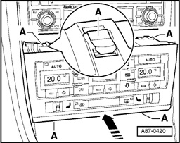 - The operating and display module, Climatronic Control Module J255 is held in position in the center console by way of 4 clips - A -.