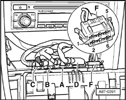 - Release connectors - A - to - D - and - F - by pressing retainer tabs and disconnect connectors.