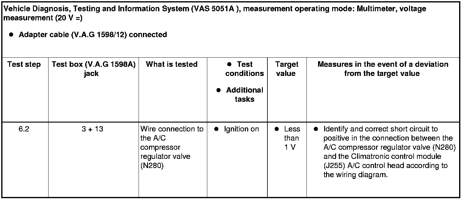 • The Climatronic control module (J255) A/C control head controls the current flowing over the A/C compressor regulator valve (N280) and thus controls the output of the compressor (read the measured value block, display group "001").