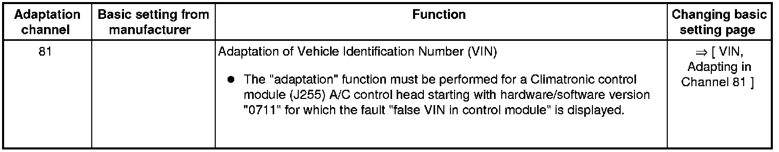 • Adaptation channels "08", "09", and " 81" are only provided for a Climatronic control module (J255) A/C control head from hardware/software version " 0711".
