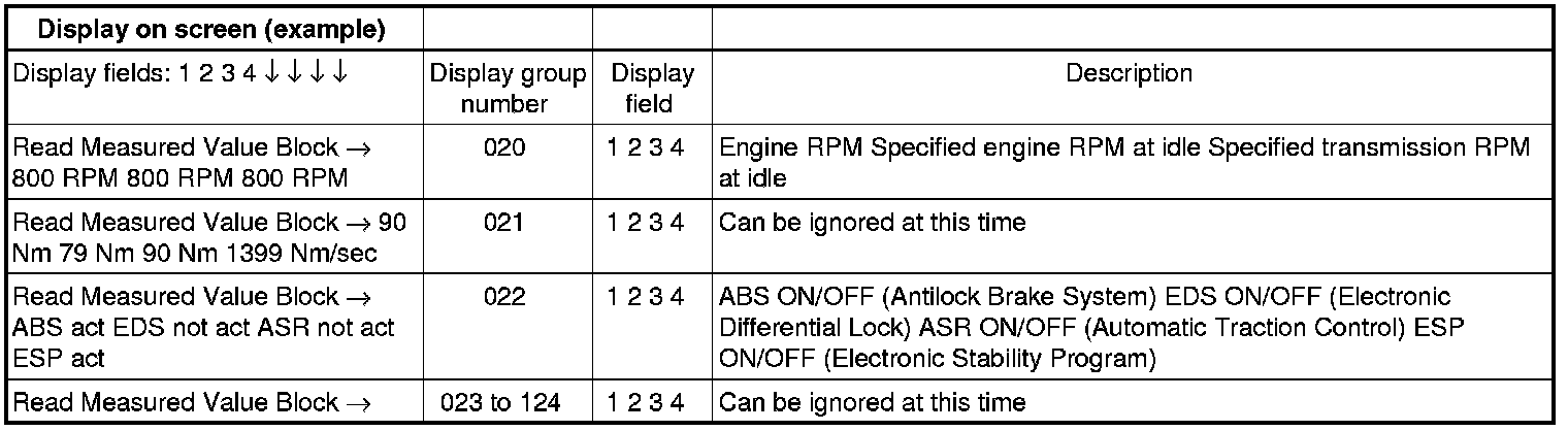 - Touch - 1 - diagnostic function "08 Read Measured Value Block".