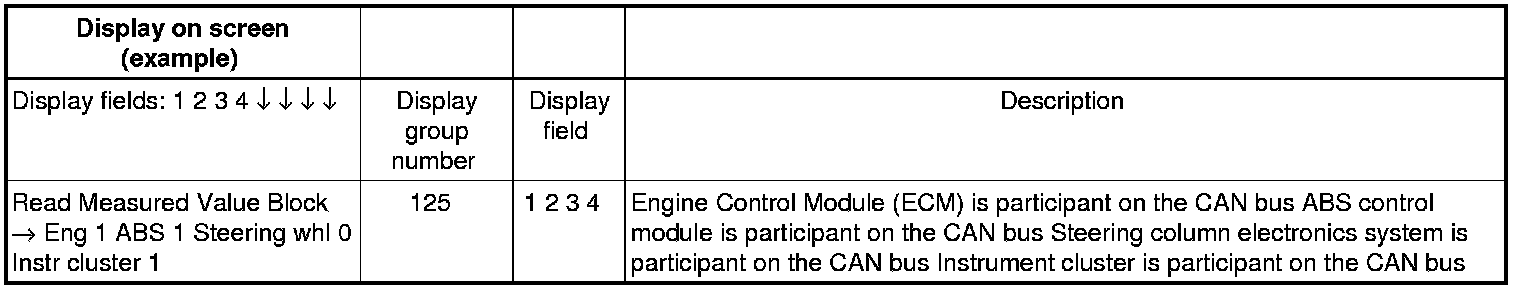 Display on vehicle diagnostic testing and information system (VAS 5051) for display group 001 to 255: