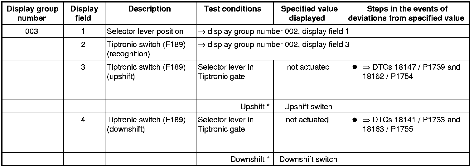 * You must activate the downshift switch (-) by tapping the selector lever to the rear. On vehicles with multi function steering wheel the downshift switch has to be activated by additionally tapping the lower left or right button (-) on the steering wheel.