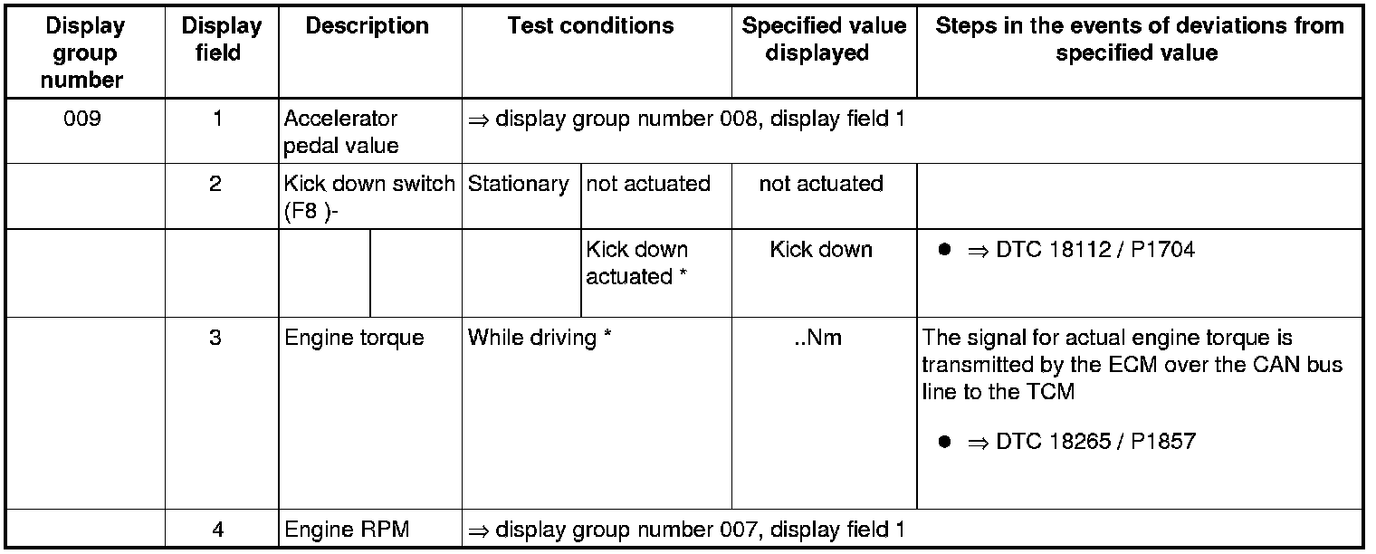 * In order to generate the kick down signal the accelerator pedal must be depressed to the stop.