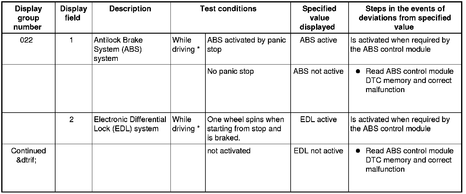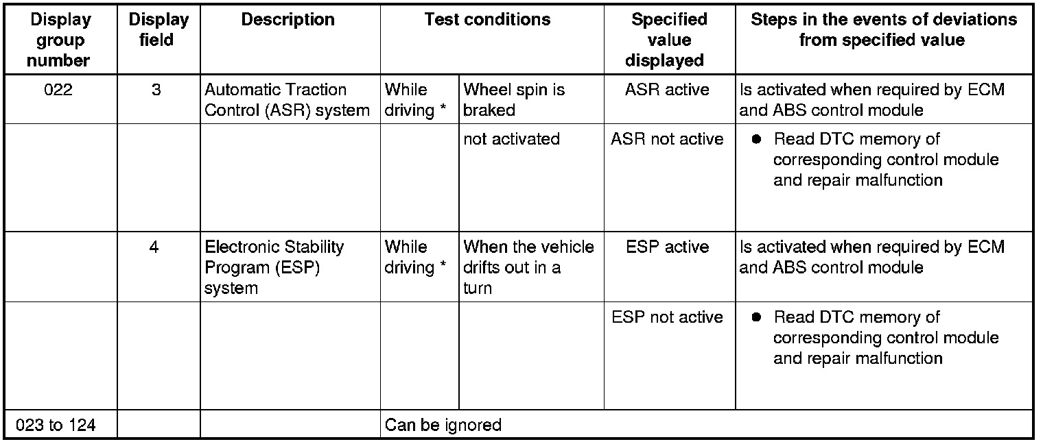 * While driving a second technician is needed to read the specified values.