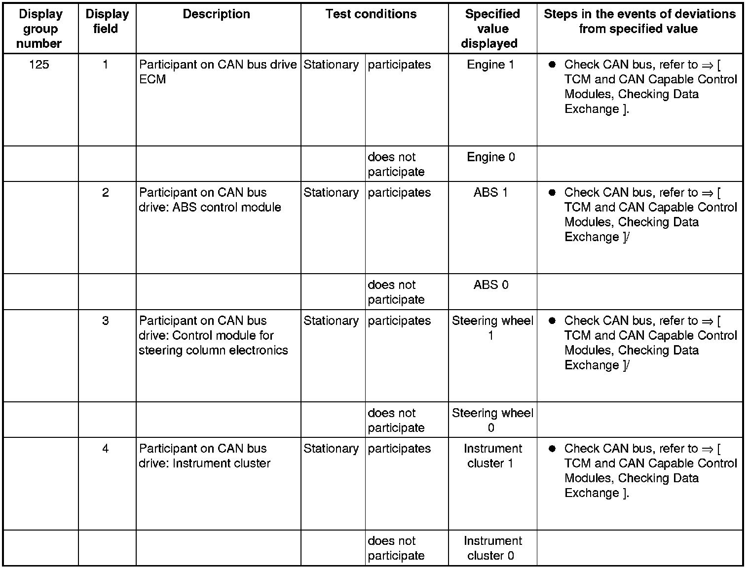 If "0" is displayed and no trouble code has been set in the DTC memory, the corresponding control module does not have CAN capability (or is faulty).