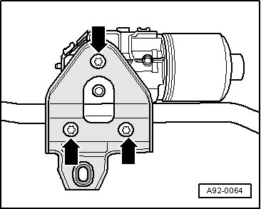- Bolt on wiper motor without crank to wiper frame to 9 Nm - arrows -.