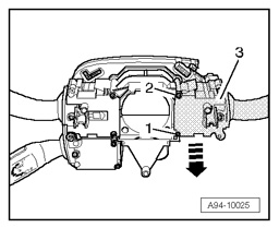 - Remove Windshield Wiper/Washer Switch E22 - 3 - from steering column switch module - arrow - .