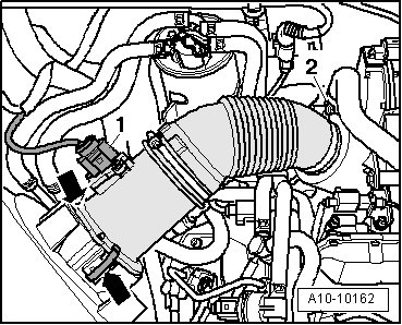 - Remove crankcase ventilation hose - 7 - by pressing release buttons.