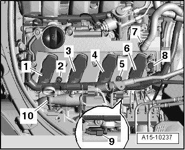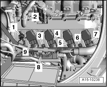 - Disconnect connectors - 9, 4, 5 and 7 - from the ignition coils and move the wiring harness to the side.