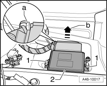 - Pull locking slide - a - in direction of arrow - b - and remove connector.