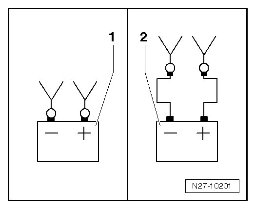 • Using the battery tester (VAS 5097A), refer to the operating instructions.