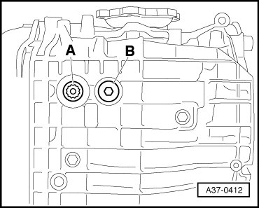 • At the latest at 45 °C (50 °C for hot countries) the ATF inspection plug - B - must be screwed in again.