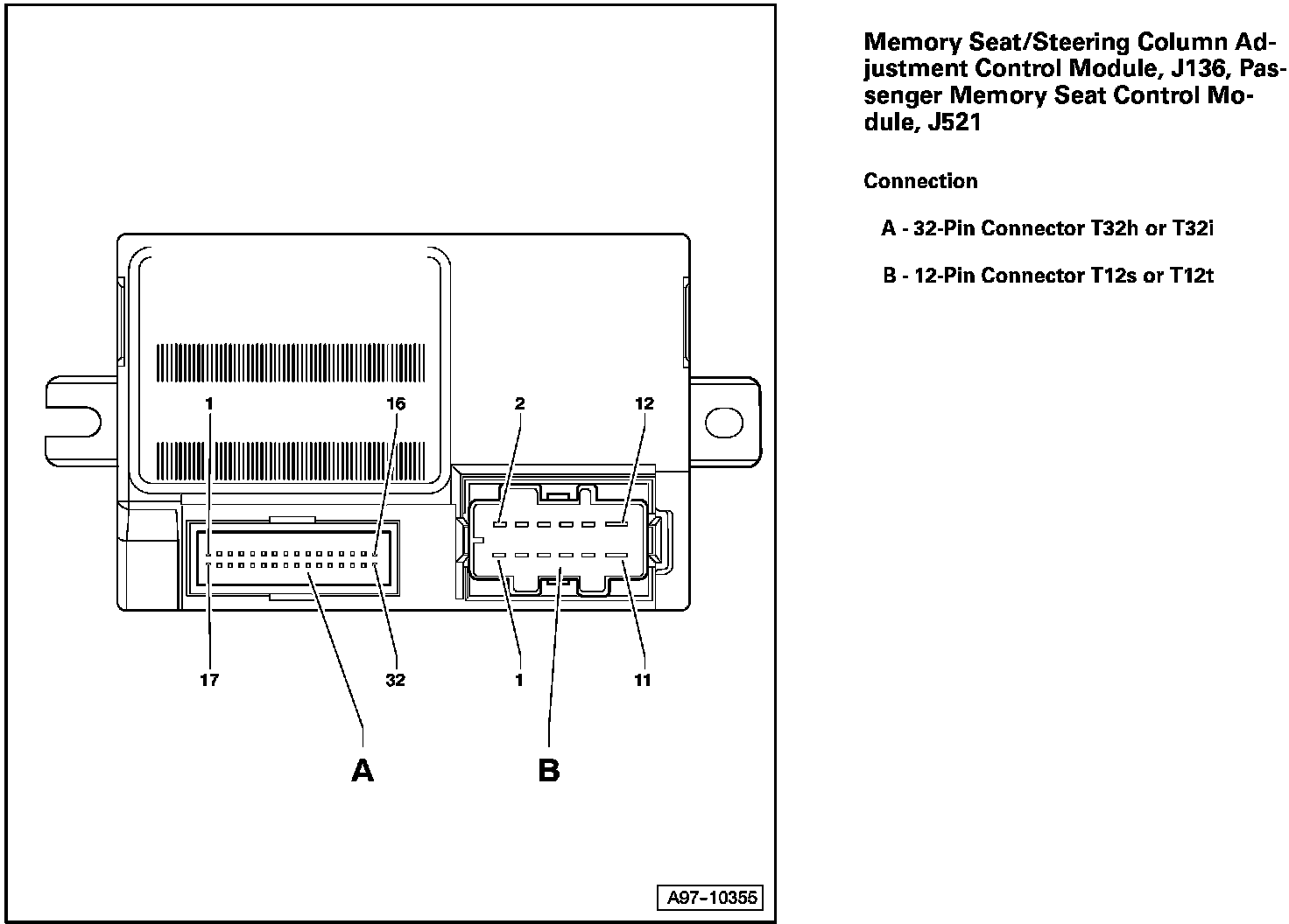 Memory Seat/Steering Column Adjustment Control Module, J136, Passenger Memory Seat Control Module, J521: