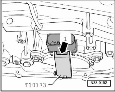 - Turn the multifunction transmission range switch - A - until the tab on the connector - arrow 1 - locks into the groove on the (T10173).