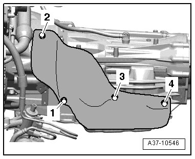 - Remove the bolts - 1, 3 and 4 - from the heat shield.