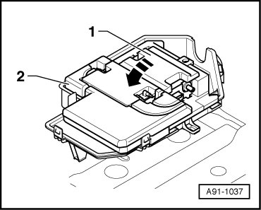- Open lid - 1 - of mounting box - 2 - in direction of - arrow -.