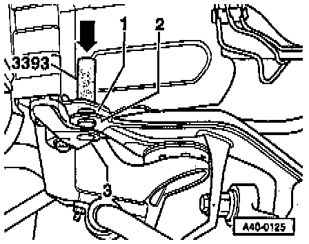 - Reinstall brake line holder. Reinstall hex bolt - 2 - and tighten.