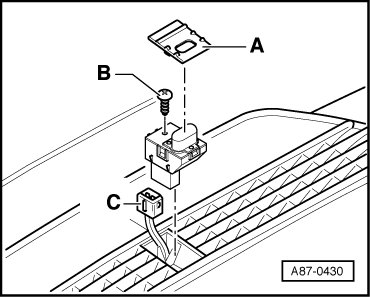 - Secure connector - C - so that it does not slide into the instrument panel and disconnect it from sunlight photo sensor (G107) - B -.