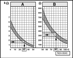 - Range A, 30 degrees C equals a resistance of 1.5 to 2.0 k Ohms