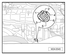 - Disconnect the Throttle Valve Control Module J338 electrical harness connector - 6 -.