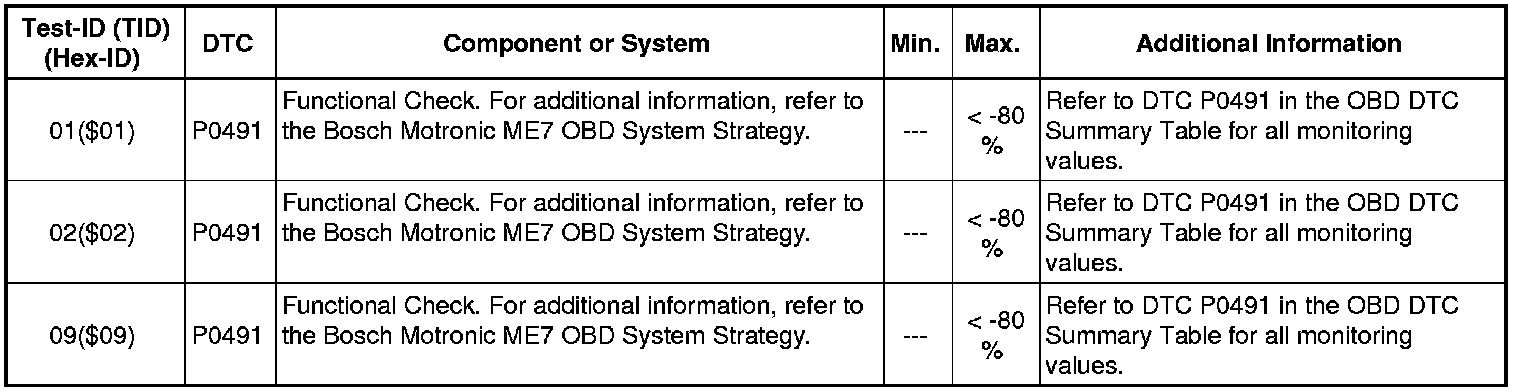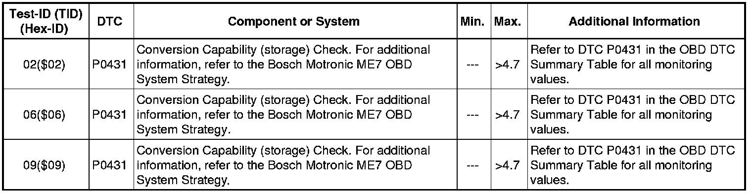 - If any component or system fails to meet the specified values, refer to Diagnostic "Mode 03: Interrogating Fault Memory" to check for stored DTC's or the corresponding diagnostic repair procedure.