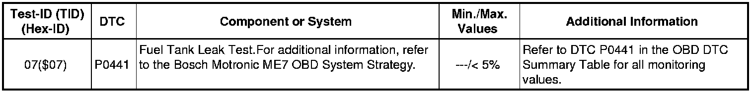 Mode 06 -TID $05 (05): Tank Ventilation System, Tank Leak Test