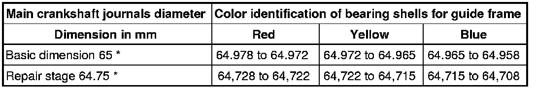 Main Bearing Shells, Allocation for Used and Reworked Crankshafts