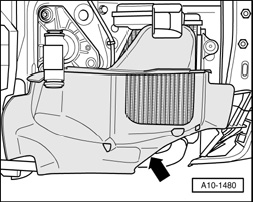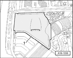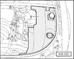 - Detach cover -1- on left of engine compartment.