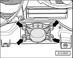 - On vehicles with auxiliary heater, screw out bolts (arrows) for exhaust pipe of auxiliary/additional heater at noise insulation.