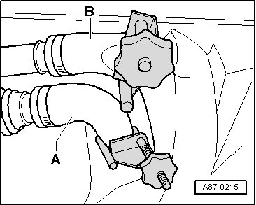 - Mark arrangement of coolant hoses - A - and - B -.