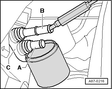 - Release clamps - A - and remove both coolant pipes - B - and - C - from the heat exchanger connections.