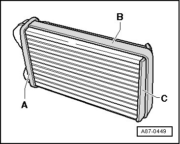 - Check seals - A -, - B -, and - C - installed on the heat exchanger. Only install a heat exchanger with undamaged seals.