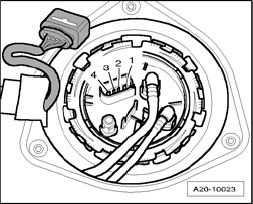 - Connect hand multimeter V.A.G 1526 C between terminal - 2 - and - 3 - for resistance measurement.