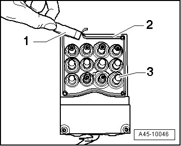 - Clean sealing surface - 2 - using a plastic scraper - 1 -. Check valves - 3 - for damage.