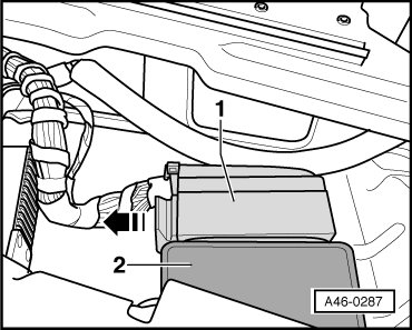 - Pull locking slide in - direction of arrow - and remove connector - 1 -.