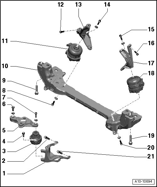 • For removing, installing and adjusting, refer to => [ Torque Support Bracket, Removing and Installing and Adjusting ] Torque Support Bracket, Removing and Installing and Adjusting