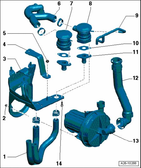 - From Secondary Air Injection (AIR) Pump Motor V101 to secondary air injection combi-valves