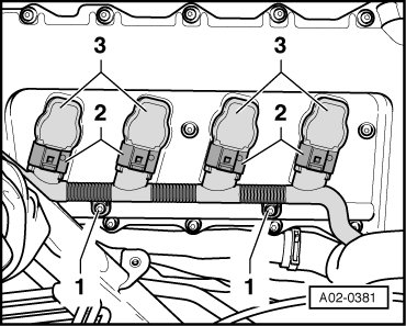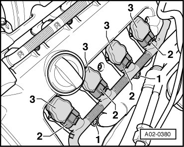 - Disconnect electrical connectors - 1 - on ignition coils - 2 -.