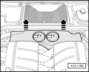 - Remove cover behind intake manifold - arrows -.