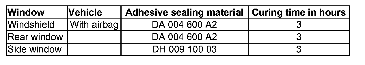 - For safety reasons, use only electrically non - conductive 2C - adhesive when installing windshield and rear window using the materials listed below.